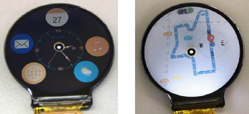 Circular shape with ultrafine diameter hole in AA area center to place the mechanical Pointers, and design of fanout line in AA can achieve the peripheral narrow bezel. It can be used in watch products, which integrating smart driver and mechanical pointer structure.