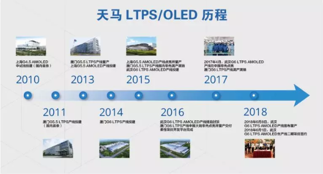 The Tianma G6 OLED production line uses LTPS substrate and has complete core process capability such as OLED evaporation and packaging. It can support the production from rigid OLED to flexible OLED, which can be used for providing high-quality OLED display products  for mobile smart terminal products such as smart phones and tablet PCs, emerging market products such as VR and AR, smart wearable, foldable devices and etc.