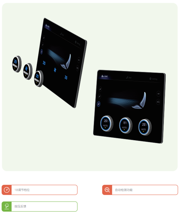 Knob技术,采用实体控制旋钮,放置在标准的触控显示屏上,通过配置触控IC的固件实现虚拟旋钮的功能。