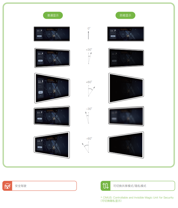 防窥显示采用CIMUS技术达到共享模式和隐私模式的切换。