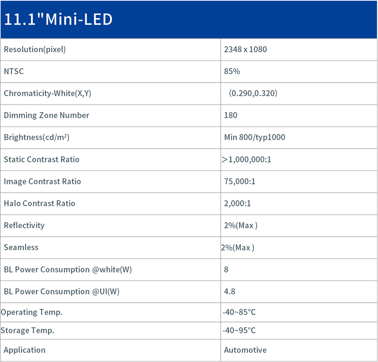 无论是从“双碳政策”的推动实施,还是从新能源车企解决用户的“里程焦虑”行动,屏幕的功耗也逐渐成为各车企,尤其是新能源车企的一个重要考量点。拥有低功耗特性的Mini-LED背光技术,能更好地助力新能源汽车超长续航,实现“里程无忧”。